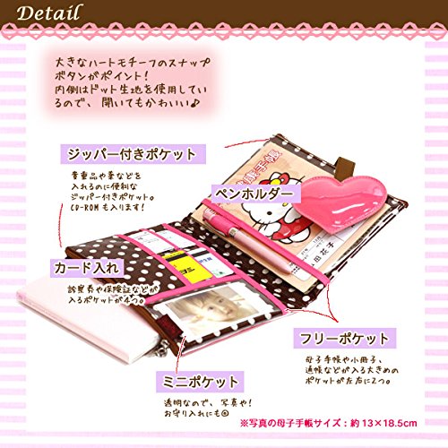 ケースとポーチがひとつになって、収納力抜群! トラベルポーチとしても便利に使えます。ぷっくり大きなハートが可愛いポイント★ ■サイズ:15×21.0(cm) ★母子手帳:約13.0×19.0cmまで収納可能 ■素材 ・綿+塩化ビニールラミネート ・ポリウレタン合成皮革 ・ナイロン ■収納 ・カードポケット:4箇所 ・クリアミニポケット:1箇所 ・ペンホルダー:1箇所 ・フリーポケット:2箇所 ・ジッパー付きポーチ:2箇所