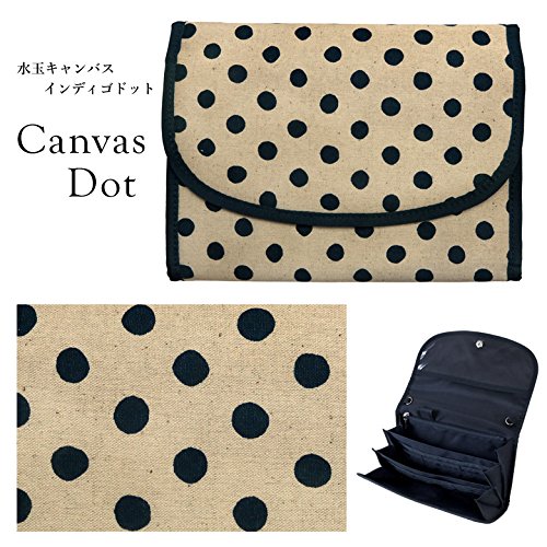 ポーチェ(pouche) 母子手帳ケース ジャバラ 水玉キャンバス大 (インディゴドット)