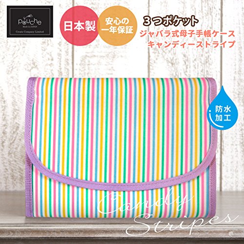 ポーチェ(pouche) 母子手帳ケース ジャバラ 防水 キャンディーストライプ