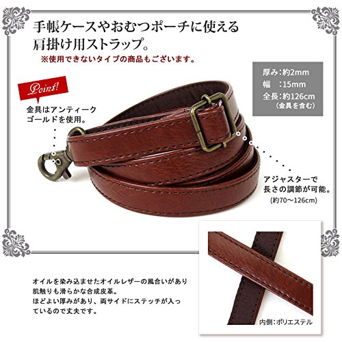 長さの調節も可能。オイルを染み込ませたオイルレザーの風合いがあり、肌触りも滑らかな合成皮革。ほどよい厚みがあり丈夫です。
