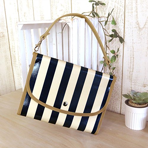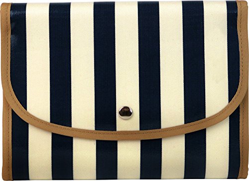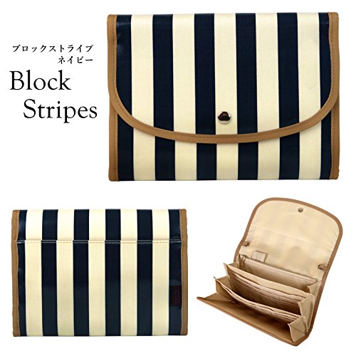 ポーチェ(pouche) 母子手帳ケース ジャバラ 防水 ブロックストライプ (ネイビー)