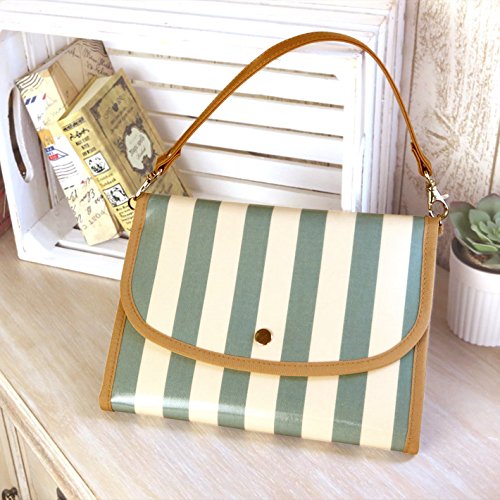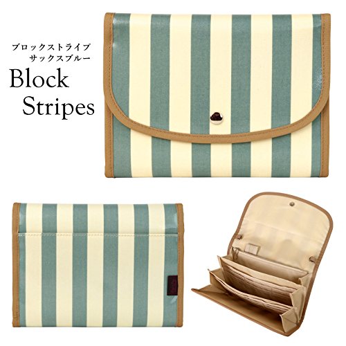 ポーチェ ブロックストライプ柄防水ジャバラ母子手帳ケース (サックスブルー)