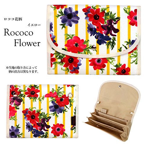 ポーチェ(pouche) 母子手帳ケース ジャバラ 防水 ロココ花柄 (イエロー)