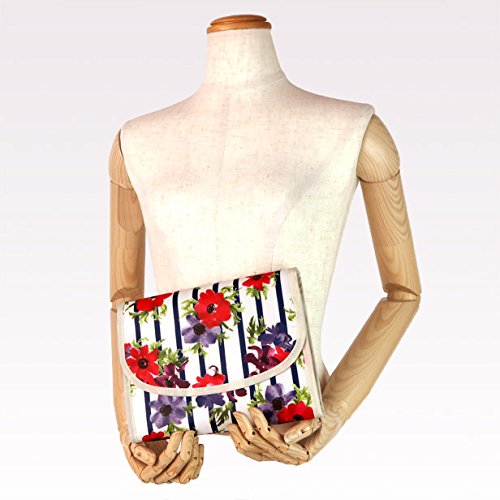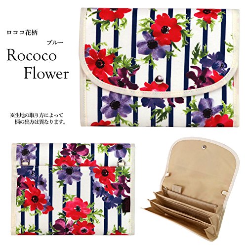 ポーチェ(pouche) 母子手帳ケース ジャバラ 防水 ロココ花柄 (ブルー)