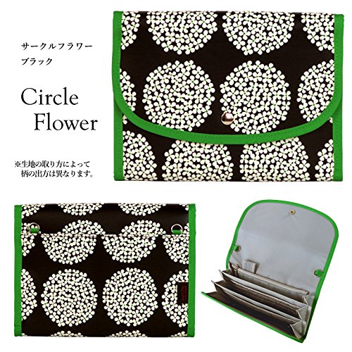 ポーチェ(pouche) 母子手帳ケース ジャバラ 防水 サークルフラワー (ブラック)