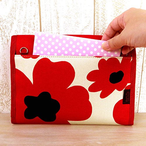 ポーチェ(pouche) 母子手帳ケース ジャバラ 北欧フラワー (カーマイン)