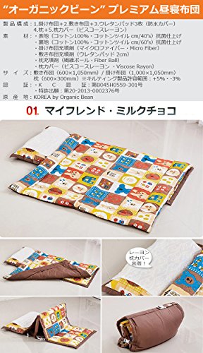 “Organic Bean”3段フォルダータイプの一体型 お昼寝布団5点セット(防水カバー) トラベルベッド 保育園 幼稚園 (01. マイフレンド 「ミルクチョコ」)