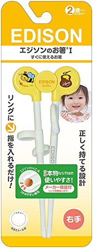 「エジソンのお箸1 イエロー 右手用 【対象年齢:2歳~就学前】」は、2歳から就学前のお子様にご使用いただけるトレーニング用お箸(右手用)です。リングに指を入れるだけで正しくお箸を持てる設計になっています。食事をしながら正しい持ち方が身につき、食事マナー習慣へ。連結部で1本1本のお箸を固定し交差防止。指用リングで指を固定して、正しい持ち方をサポートします。箸先が広く、すべり止め加工で掴みやすくなっています。なまえシール付き。(R)エジソンのお箸 ※パッケージリニューアルの為、掲載中と異なるパッケージの商品が届く場合がございます。ご了承下さい。