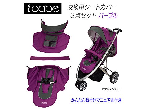 スタイリッシュに着せ替えもできるA型ベビーカー【ibabe】専用 【交換用シートカバー3点セット】 カラー:パープル