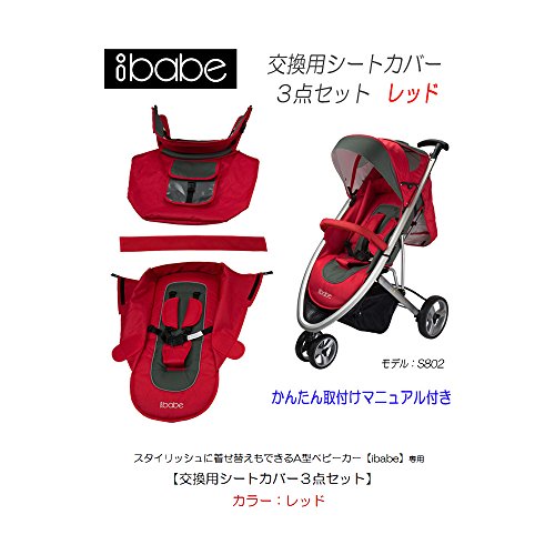 着せ替えもできるA型ベビーカー【アイ・ベイブ/ibabe専用 交換用シートカバー3点セット:カラー:レッド 】
