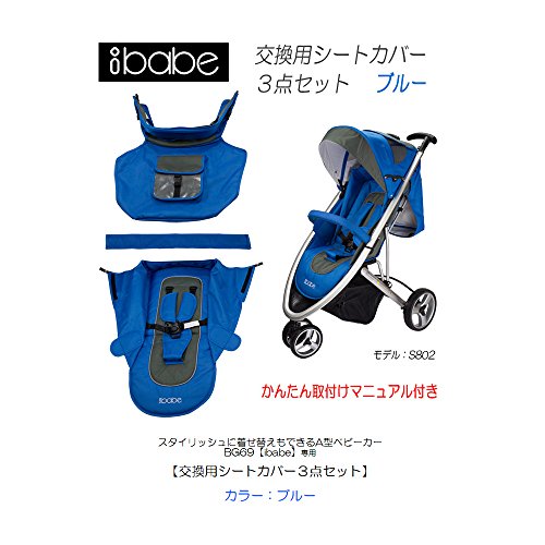 着せ替えもできるA型ベビーカー【アイ・ベイブ/ibabe専用 交換用シートカバー3点セット:カラー:ブルー 】