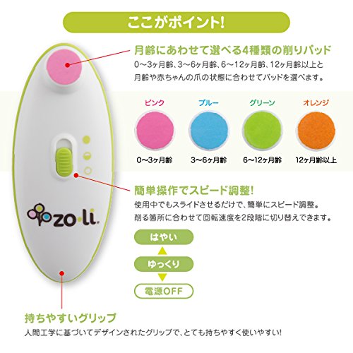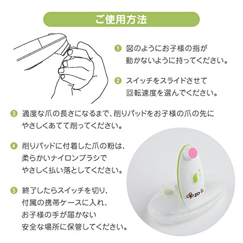 - デリケートな赤ちゃんの爪を安全・簡単に処理! 2段階で回転速度が調節できる赤ちゃん用電動爪ヤスリ