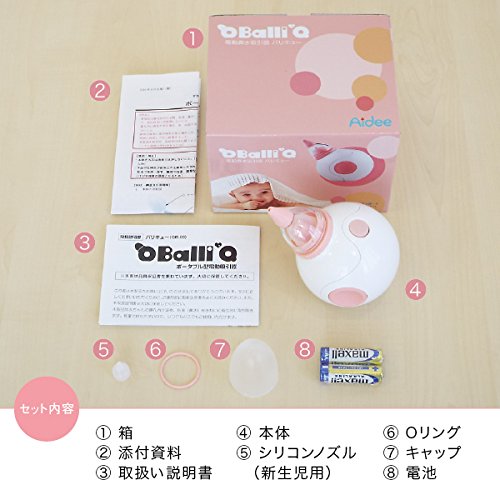 Aidee(エイディー) ポータブル型電動吸引器 電動鼻水吸引器 赤ちゃん用鼻吸器 バリキューBalliQ ピンク QB03-03