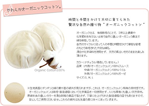 業界初! サイズ展開オーガニック100%母乳パッド人気No1の授乳ブラと好相性♪ 敏感な授乳期のママにオーガニックコットン100%で安心の母乳パッド。 授乳服&マタニティウェアの専門店だからこそできる、ママのためのやさしいデザインとこだわりの素材選び。 トラブルの多い授乳ママのデリケートなおっぱいにふんわり優しく、形や母乳の量、使用する時間帯などで選べるS、M、Lサイズをご用意いたしました。今までにないやさしい着け心地をぜひお試しください。 オーガニックコットン100%素材の6層構造でしっかり吸収&通気性抜群! ?選べるサイズが嬉しい!細やかな使い分けができるサイズ展開? S:12cm M:13cm L:14cm