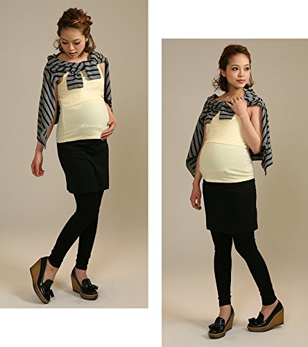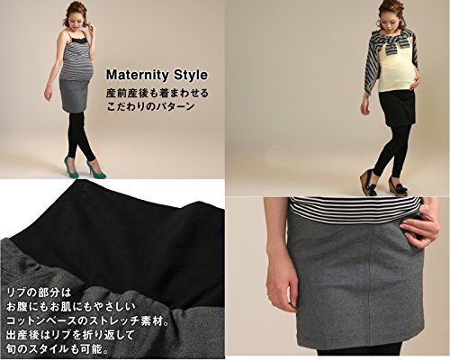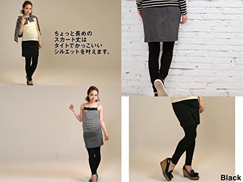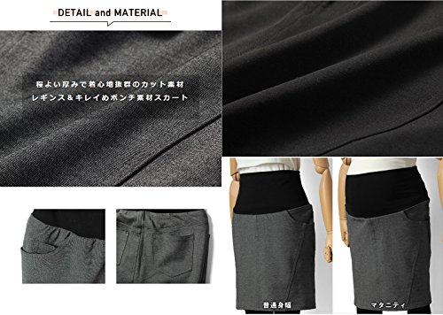 Sweet Mommy ポンチ素材 タイトスカート付き レギンス お腹リブ コットンストレッチリブ 美シルエット 産前産後 マタニティボトム マタニティ/M チャコール