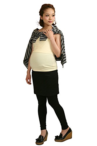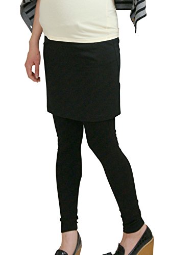 Sweet Mommy ポンチ素材 タイトスカート付き レギンス お腹リブ コットンストレッチリブ 美シルエット 産前産後 マタニティボトム マタニティ/LL ブラック