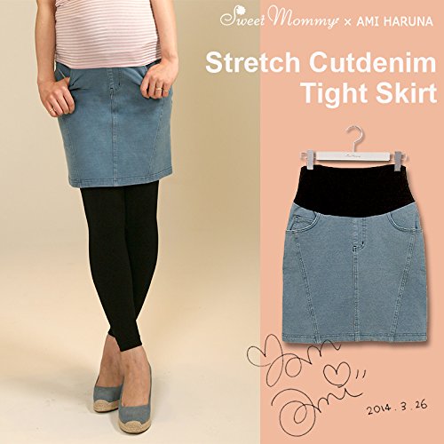 スウィートマミー (Sweet Mommy) ストレッチ カットデニム マタニティ タイトスカート LL ブルー