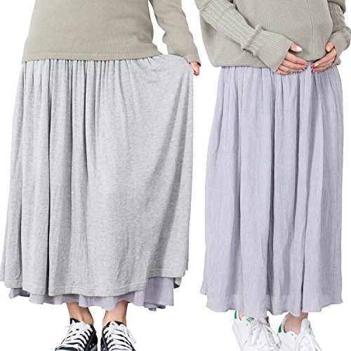Sweet Mommy リバーシブル マキシスカート コットンシフォン×しっとりレーヨン ウエストリブ アースカラー ママのための短めプチマキシ 大人カジュアル 体型カバー 楽ちん リゾート マママキシ 産前産後 春 夏 秋 ロングスカート マタニティ L 杢グレー×ラベンダー