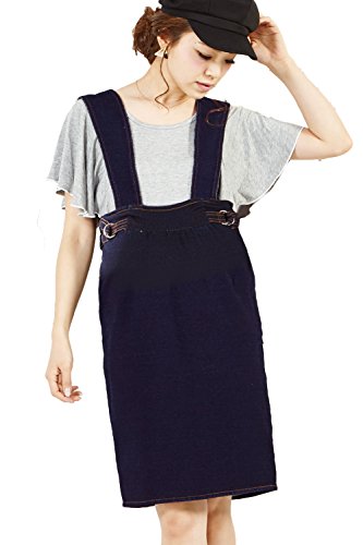 Sweet Mommy ニットデニム ハイウエスト ジャンパースカート タイトロング バックスリット 2WAY ウエスト調節 肩ひも調節 マタニティ 産前産後兼用/M/ネイビー