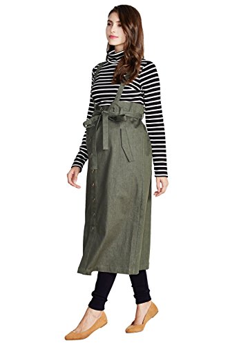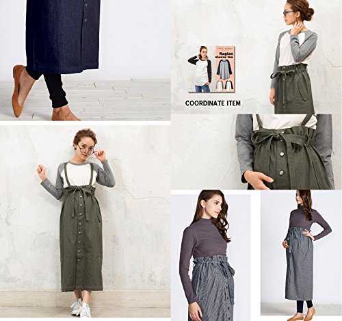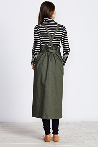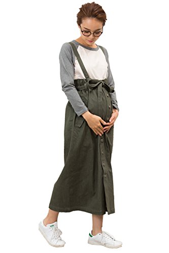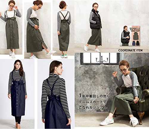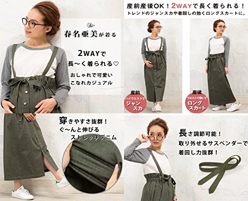 Sweet Mommy 大人カジュアル 2WAY デニムスカート ジャンパースカート ロングスカート ストレッチデニム フロントボタン ウエスト調節可能 サスペンダー付き 春 夏 秋 冬 着回し 産前産後 マタニティ/F/カーキ