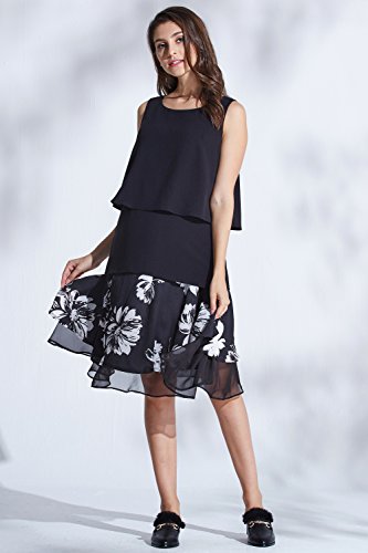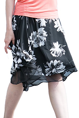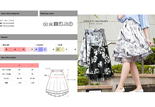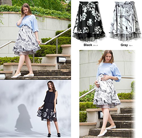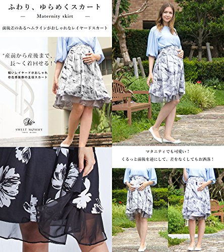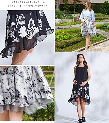 Sweet Mommy マタニティ スカート ボトム バックロング 総柄プリント 大きいサイズ 妊娠時は前後逆でもかわいい シフォンレイヤード 透け感 オフィス フォーマル お宮参り 春 夏 秋 産前産後/ブラック/L
