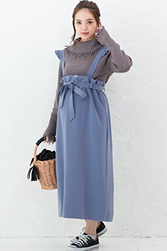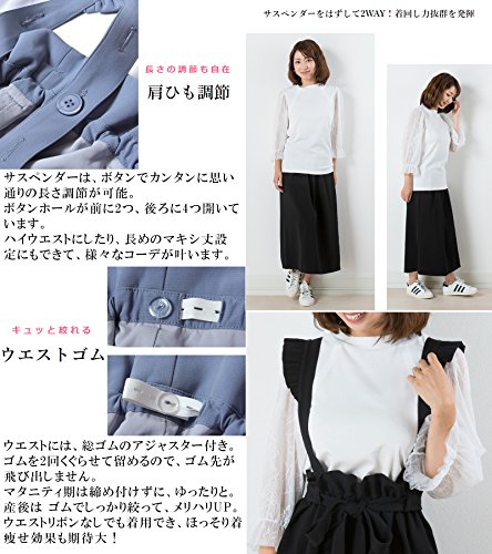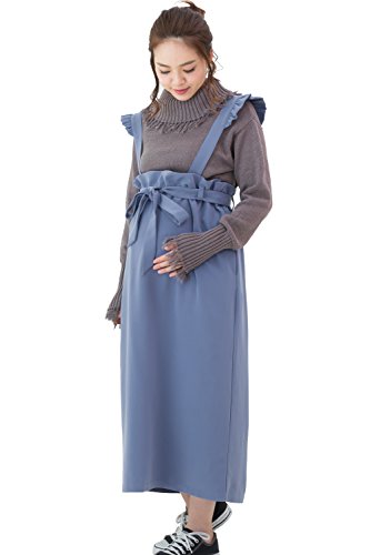 Sweet Mommy マタニティボトム ロングスカート フリルサスペンダー付き ウエスト調節機能 2WAY 肩ひも長さ調節可 ウエストリボン 大きいサイズ 裏地付き 上品素材 マキシ 産前産後 マタニティ/ブルー/F