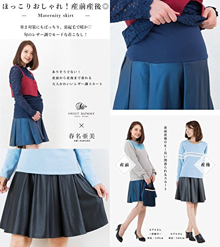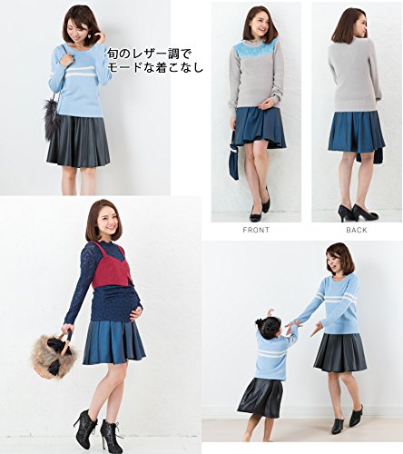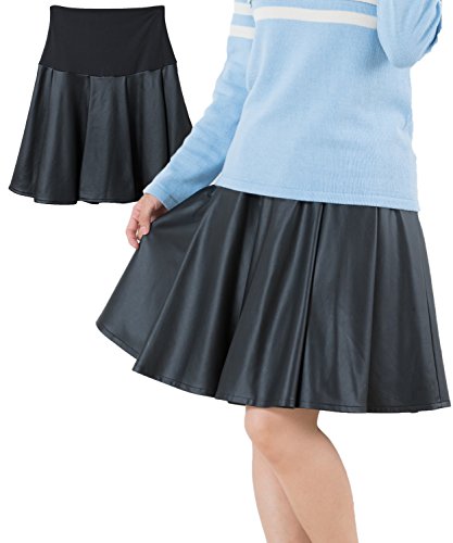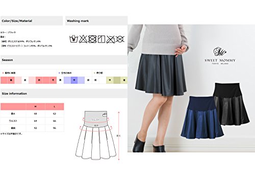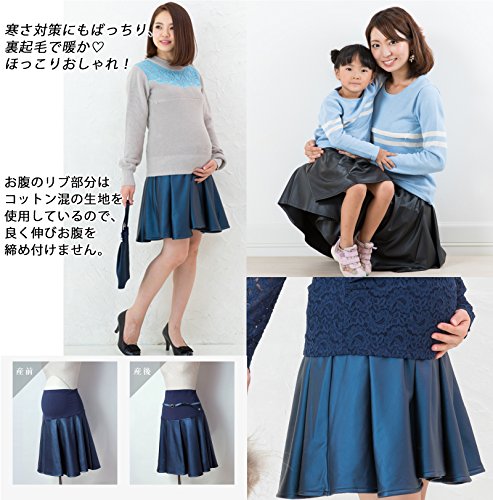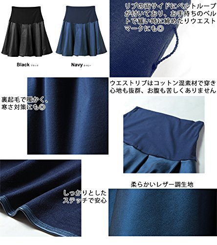 Sweet Mommy マタニティスカート レザー調 裏起毛 ボトム コットン混ウエストリブ ベルトループ付き あったか 大きいサイズ ズボン 産前産後 マタニティ 秋 冬 親子コーデ可フェイクレザーフレアスカート/ブラック/M