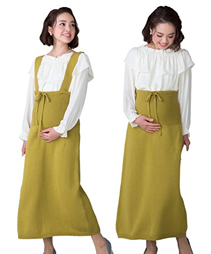 Sweet Mommy マタニティスカート 2WAYボトム ニット ストラップ取り外し可 オーガニックコットン100% バックスリット ウエスト調節 ショルダー高さ調節可 大きいサイズ マキシスカート 産前産後 マタニティ/オリーブ/L