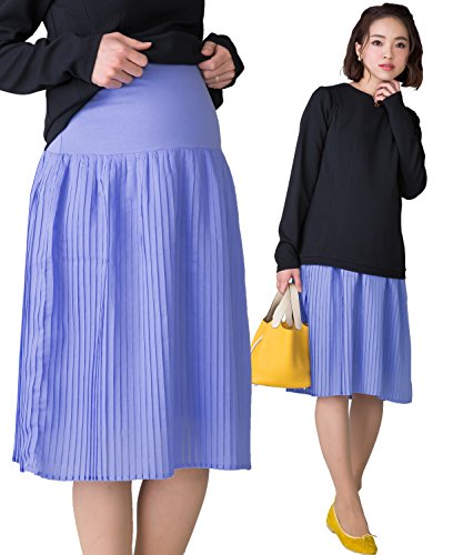 Sweet Mommy マタニティ スカート プリーツ コットン ウエストリブ ブルー M