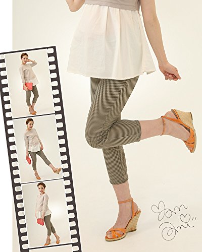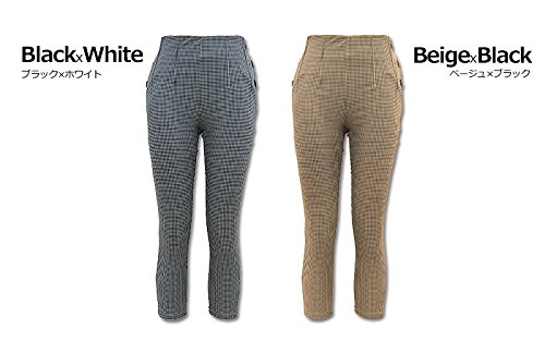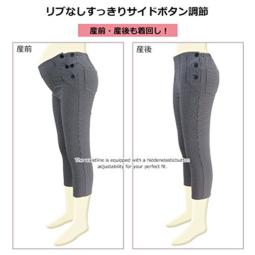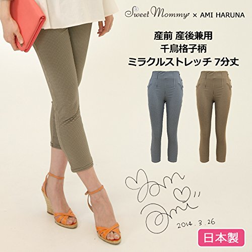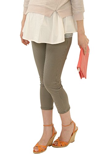 スウィートマミー (Sweet Mommy) 日本製 千鳥格子柄 ストレッチ クロップド マタニティ パンツ L ベージュ×ブラック