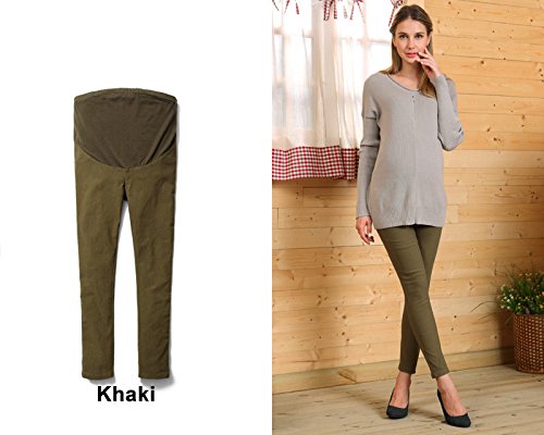 Sweet Mommy マタニティパンツ ボトム スキニー しっかり生地 スーパーストレッチ マジック美脚パンツ コットンリブ ウエスト調節機能 ポケット付き バックギャザーで背中浮かない ズボン 大きいサイズ 秋 冬 マタニティデニム マタニティ レギンスパンツ マタニティウェア デニム 産前産後 臨月/ L カーキ