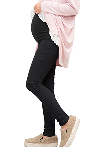 Sweet Mommy マタニティパンツ ボトム スキニー しっかり生地 スーパーストレッチ マジック美脚パンツ コットンリブ ウエスト調節機能 ポケット付き バックギャザーで背中浮かない ズボン 大きいサイズ 秋 冬 マタニティデニム マタニティ レギンスパンツ マタニティウェア デニム 産前産後 臨月/ M ブラック