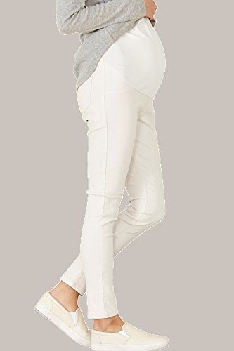 Sweet Mommy マタニティパンツ ボトム スキニー しっかり生地 スーパーストレッチ マジック美脚パンツ コットンリブ ウエスト調節機能 ポケット付き バックギャザーで背中浮かない ズボン 大きいサイズ 秋 冬 マタニティデニム マタニティ レギンスパンツ マタニティウェア デニム 産前産後 臨月/ M オフホワイト