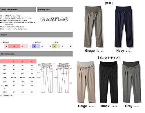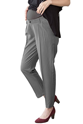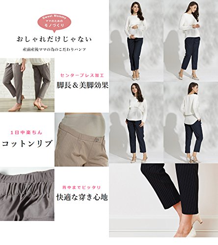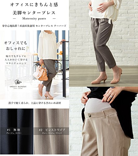 Sweet Mommy マタニティパンツ ボトム センタープレス加工 大きいサイズ ピンストライプ 妊婦 柔らか美シルエット テーパード パンツ ウエスト調節機能 コットンウエストリブ オフィス ポケット付き バックセンターゴム マニッシュ 産前産後兼用 ズボン/グレー・ストライプ/M