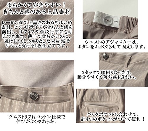 レーヨン混で上品さのあるきれいめ素材。ピンストライプがきちんと感を演出し、オフィスや学校行事にも対応できます。