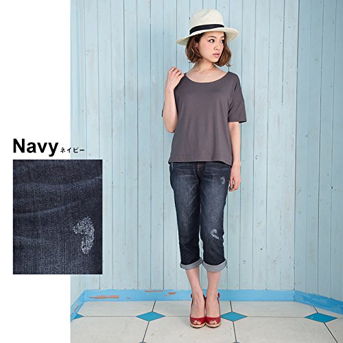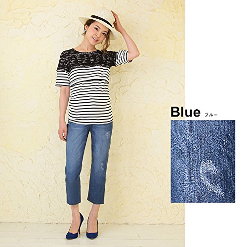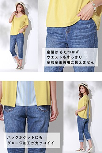 Sweet Mommy 産前産後 クロップド クラッシュデニム SSベルト付き マタニティパンツ ジーンズ L ブルー