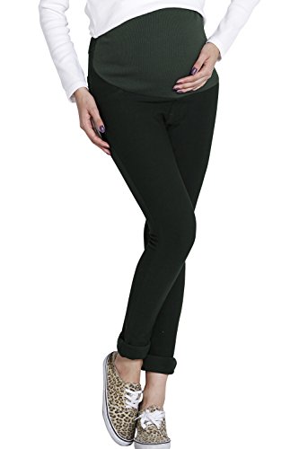 Sweet Mommy マタニティパンツ ボトム 裏起毛 たてよこ4WAYストレッチ ツイル/レザー調 スリムフィット ウエストリブ ウエスト調節機能 大きいサイズ ズボン 秋 冬 産前産後 マタニティ M ダークグリーン