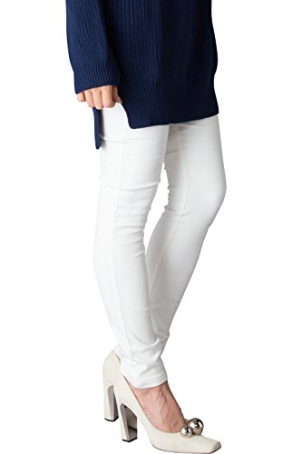 Sweet Mommy マタニティパンツ ボトム 裏起毛 たてよこ4WAYストレッチ ツイル/レザー調 スリムフィット ウエストリブ ウエスト調節機能 大きいサイズ ズボン 秋 冬 産前産後 マタニティ M ホワイト