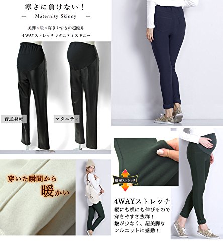 - 【大人気!】秋冬定番の厚手裏起毛のマタニティスキニー!たてよこに伸びる4WAYストレッチ素材で、穿きやすく、しわにならない最強アイテム。