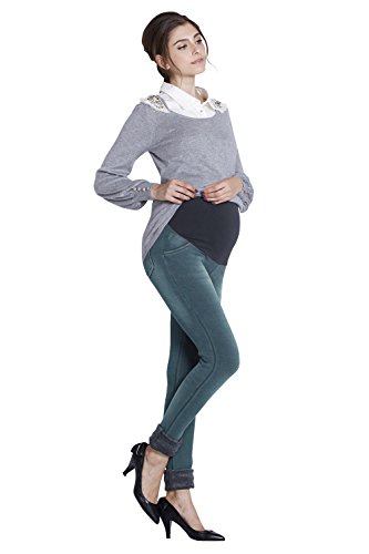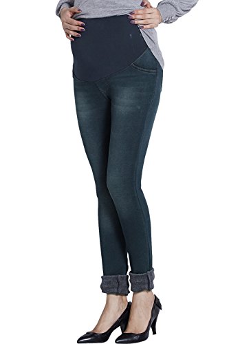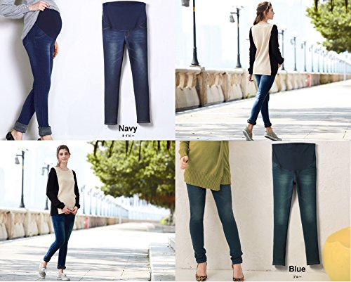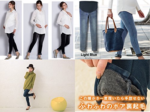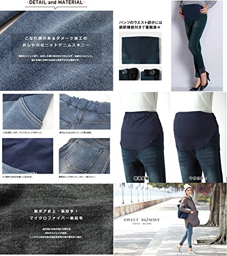 Sweet Mommy マイクロファイバー ふわふわ裏起毛 こなれダメージ加工 ニットデニム ジーンズ 厚手 秋冬 たてよこ 4WAYストレッチ 美シルエット ウエスト調節機能 マタニティ スキニー パンツ ボトム 産前産後 マタニティウェア/ L ブルー