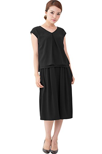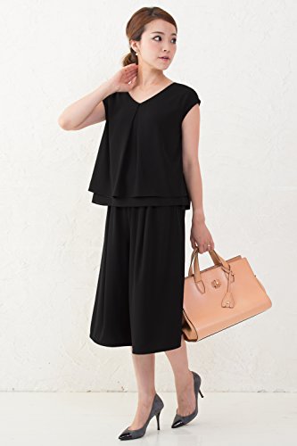 Sweet Mommy マタニティトップス ボトム セットアップ 授乳服 授乳口付きフレンチスリーブ 上下セット ウエストゴム リボン取り外し可能 大きいサイズ ジョーゼット×シフォン 裏地付き ポケット付き オフィス フォーマル 春 夏 半袖 産前産後 M ブラック