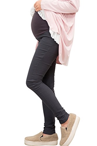 Sweet Mommy マタニティパンツ ボトム スキニー しっかり生地 スーパーストレッチ マジック美脚パンツ コットンリブ ウエスト調節機能 ポケット付き バックギャザーで背中浮かない ズボン 大きいサイズ 秋 冬 マタニティデニム マタニティ レギンスパンツ マタニティウェア デニム 産前産後 臨月/ M チャコール