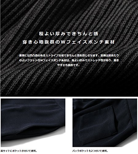 裏側は肌あたりのよいフラットなWフェイスポンチ素材は、程よい厚みでストレッチ性があり、動きやすさも抜群です。