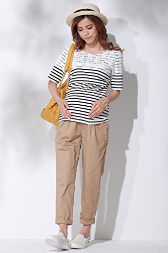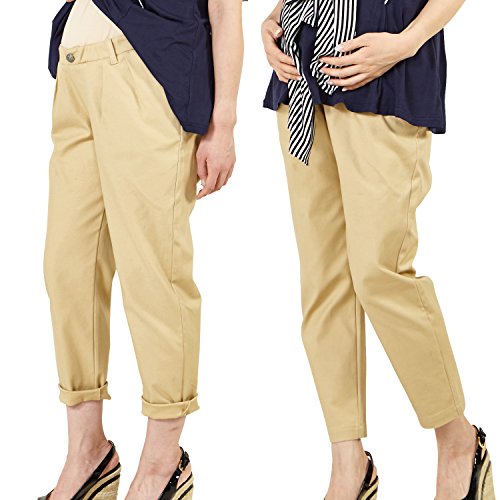 Sweet Mommy マタニティパンツ ボトム チノテーパード ウエスト調節機能 ウエストリブ 柔らかストレッチコットン ズボン 産前産後 マタニティ L ベージュ