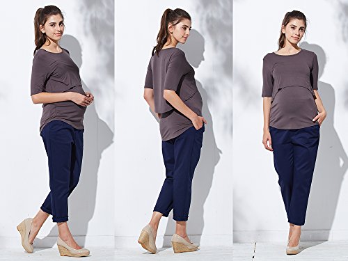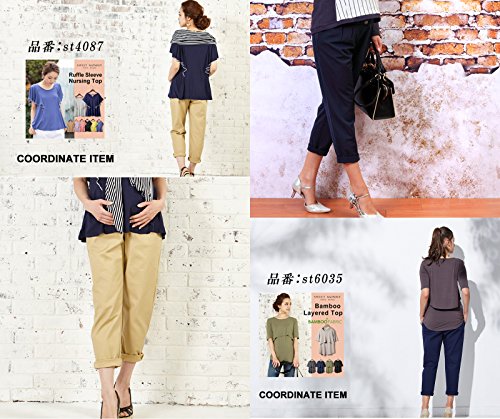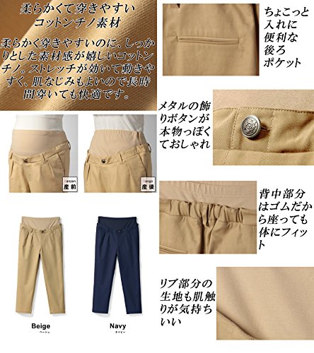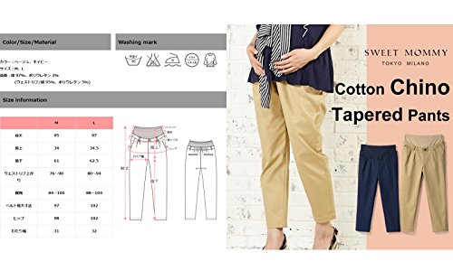 Sweet Mommy マタニティパンツ ボトム チノテーパード ウエスト調節機能 ウエストリブ 柔らかストレッチコットン ズボン 産前産後 マタニティ M ネイビー