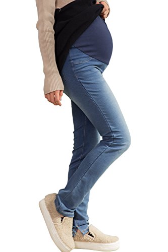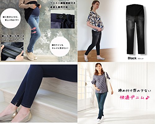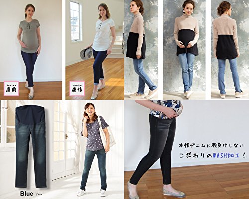 Sweet Mommy ニット ウォッシュ スーパーストレッチ デニムスキニー 裾スリット 柔らか フィット マタニティ ボトム 産前産後 ウエスト調節機能 M ライトブルー