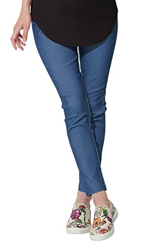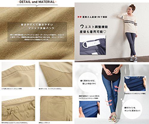 Sweet Mommy スーパーストレッチ カラースキニー マジック美脚パンツ コットンリブ ウエスト調節機能 ポケット付き 背中ゴム仕立て 11色 大きいサイズ マタニティデニム マタニティ レギンスパンツ マタニティウェア デニム 産前産後 臨月/ブルーデニム/LL