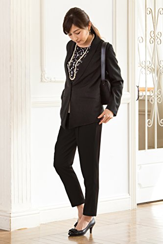 Sweet Mommy センタープレス 軽やかテーパードパンツ 総ウエストゴム 取り外し可能リボン ポケット付き 総裏地付き きれいめ オフィス 上品 ズボン 産前産後 マタニティ/ブラック/L