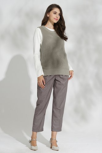 Sweet Mommy マタニティパンツ ボトム センタープレス加工 大きいサイズ ピンストライプ 妊婦 柔らか美シルエット テーパード パンツ ウエスト調節機能 コットンウエストリブ オフィス ポケット付き バックセンターゴム マニッシュ 産前産後兼用 ズボン/グレージュ・無地/L