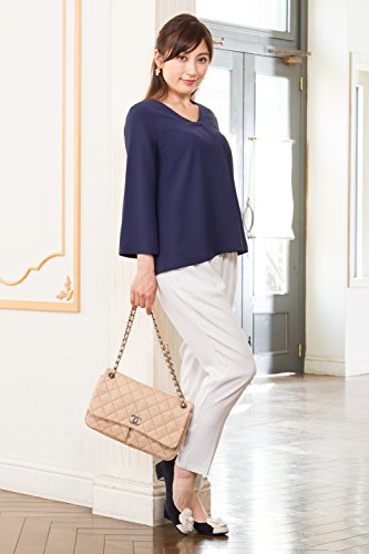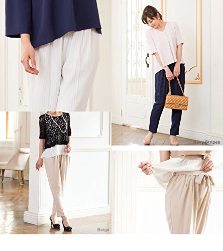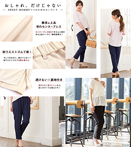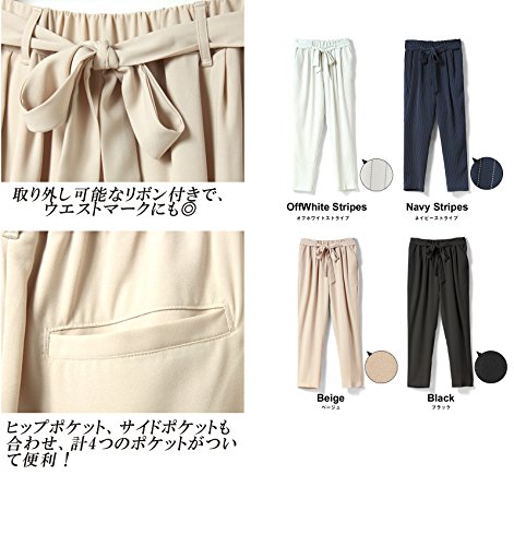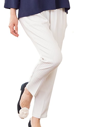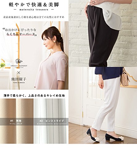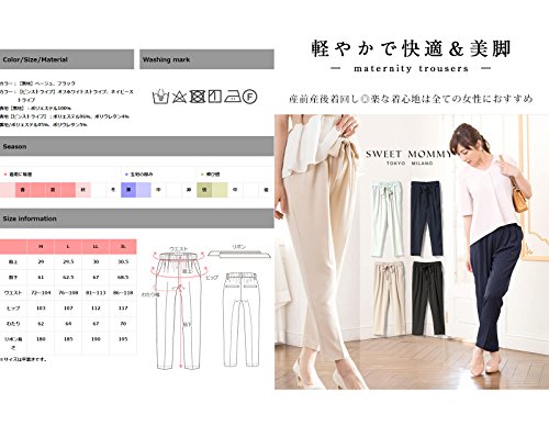 Sweet Mommy センタープレス 軽やかテーパードパンツ 総ウエストゴム 取り外し可能リボン ポケット付き 総裏地付き きれいめ オフィス 上品 ズボン 産前産後 マタニティ/オフホワイトストライプ/L